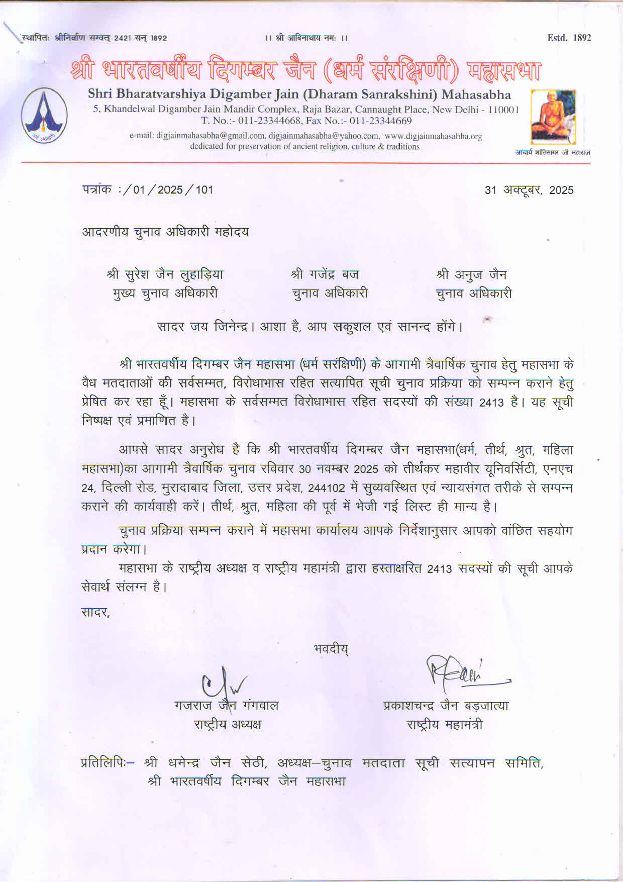 Final List for the proposed elections of SHREE BHARATVARSHIYA DIGAMBER JAIN MAHASABHA