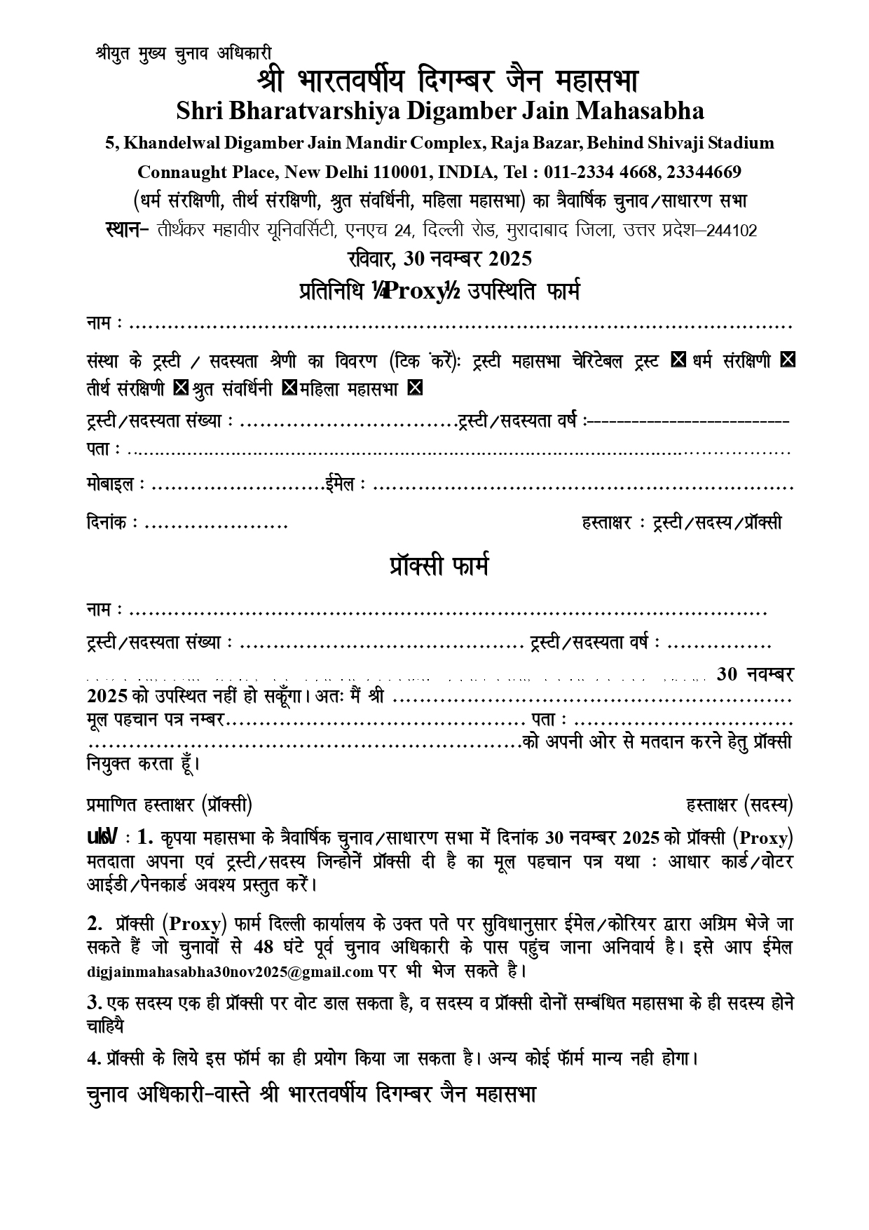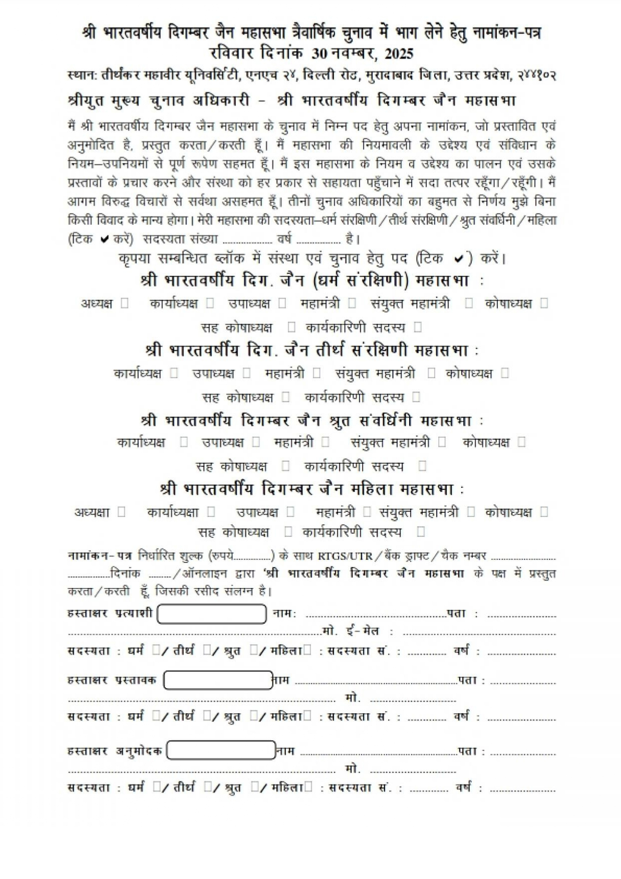 Final List for the proposed elections of SHREE BHARATVARSHIYA DIGAMBER JAIN MAHASABHA